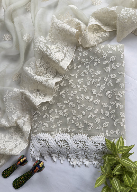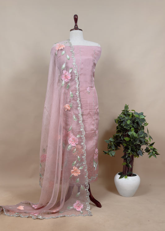 Chikkoo Organza Unstitched Suit with Flamingo Applique Work