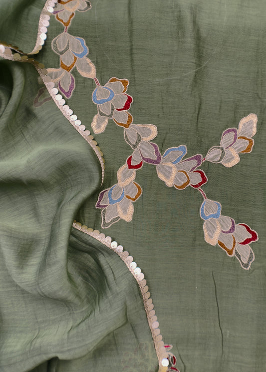 Fern Green Premium Mul Chanderi Chidiya Suit With Handwork