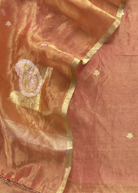 Fire Orange Handloom Tissue Silk Suit With Kadwa Weaves