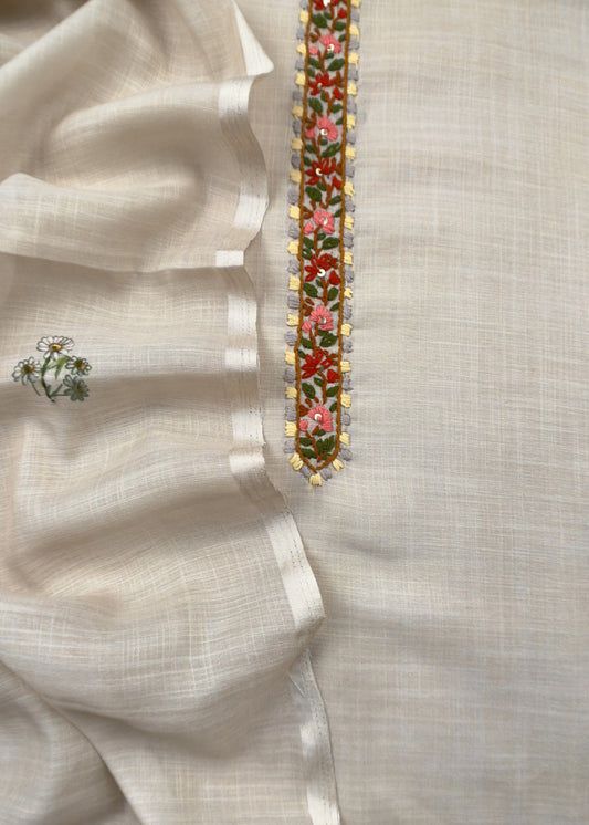 Fawn Linen Deer Suit Fabric With Kantha Hand Embroidery