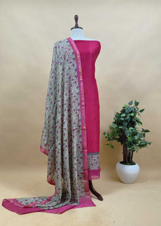 Fawn Kalamkari Print Pure Maheshwari Silk Unstitched Suit Fabric