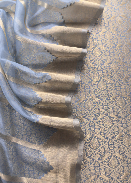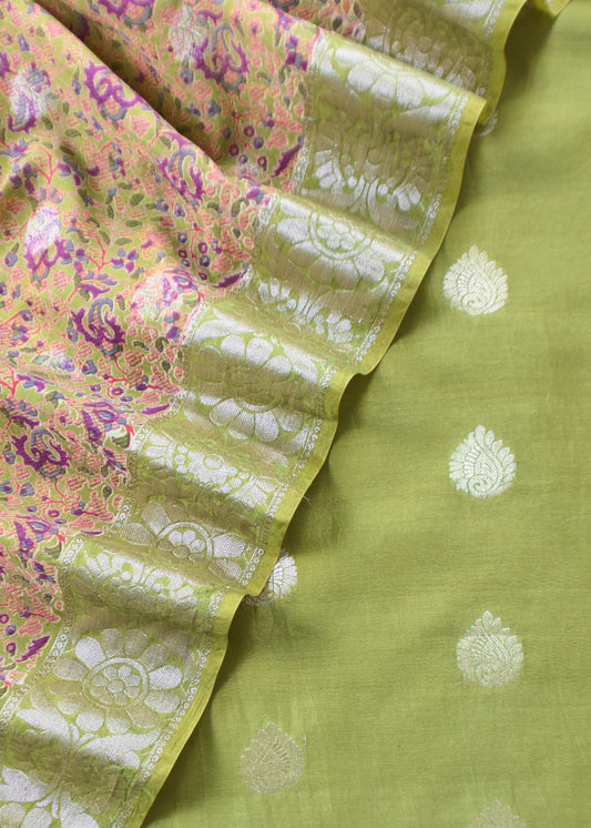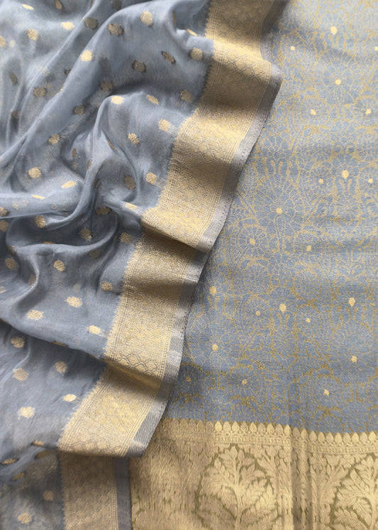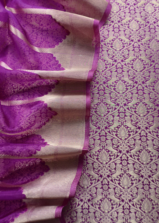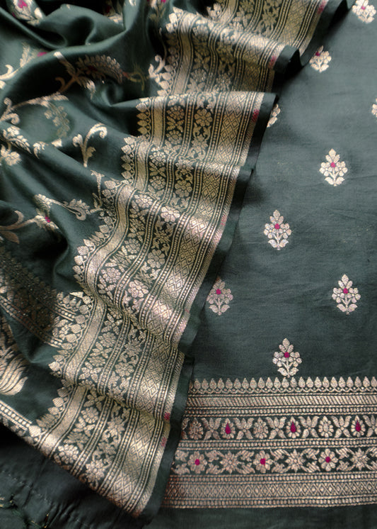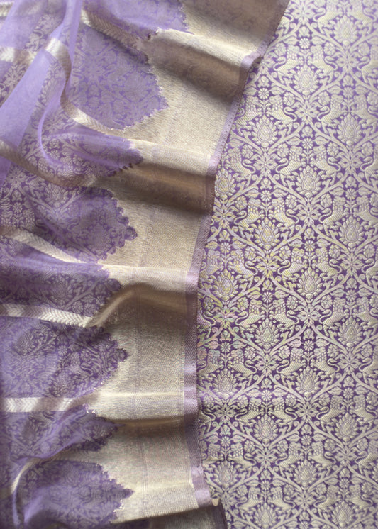 Banarasi Silk Brocade Suit With Organza Dupatta