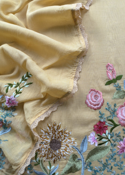 Banana Yellow Summer Special Mul Chanderi Suit With Kashmiri Embroidery