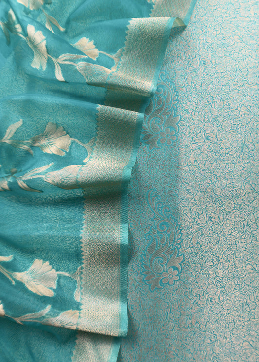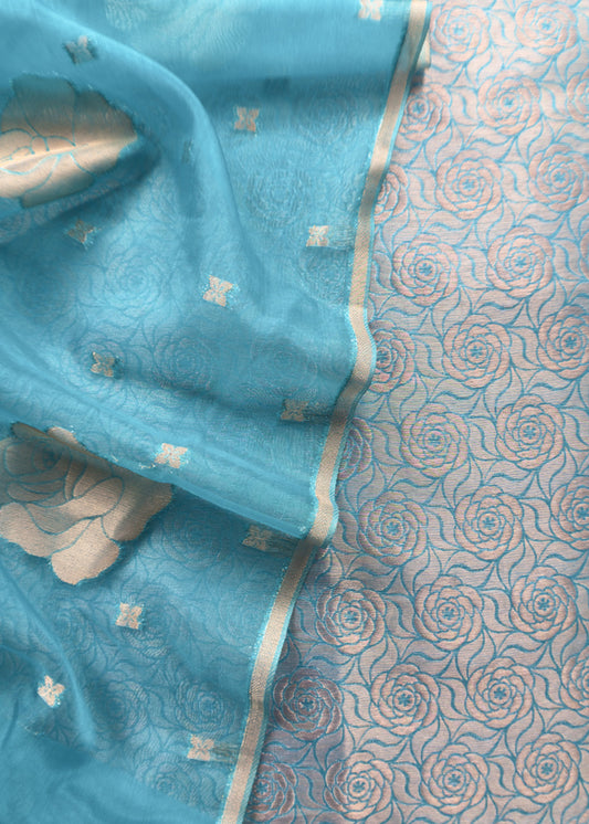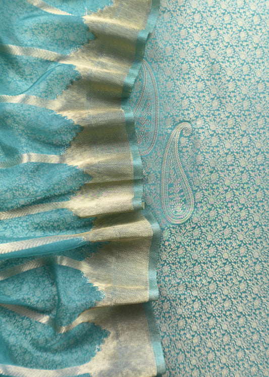 Firozi Banarasi Silk Brocade Suit With Organza Dupatta