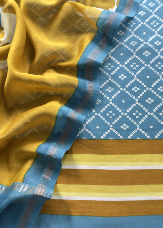 Firozi Bandhani Maheshwari Silk Suit With Dupatta