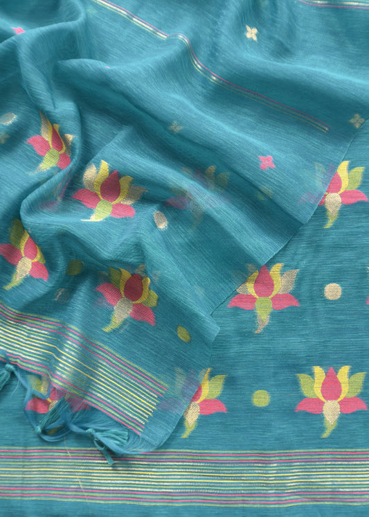 Firozi Floral Jamdani Weaved Unstitched Suit In Chanderi