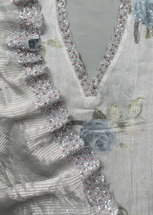 Gajri Flamingo Organza Georgette Suit Fabric With Resham Embroidery