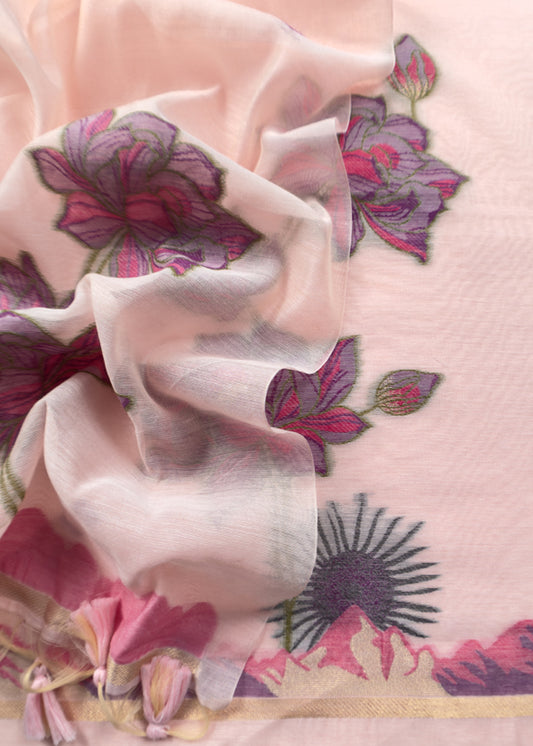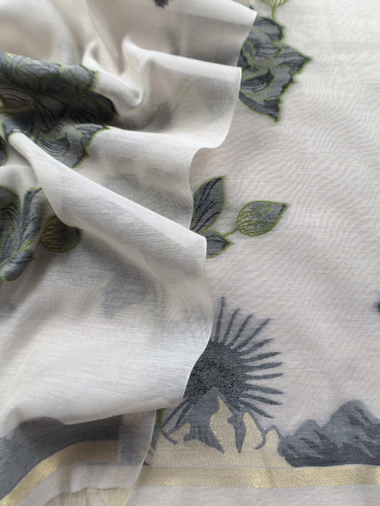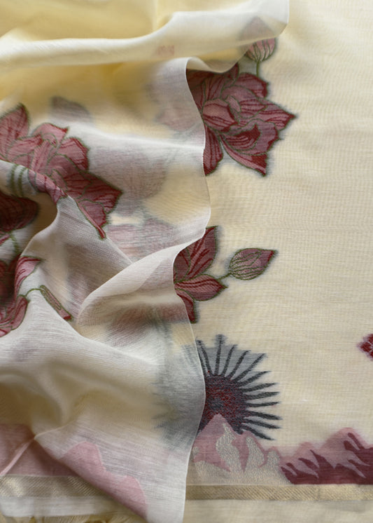 Floral Paradise Jute Linen Suit fabric with shaded Jamdani weaving