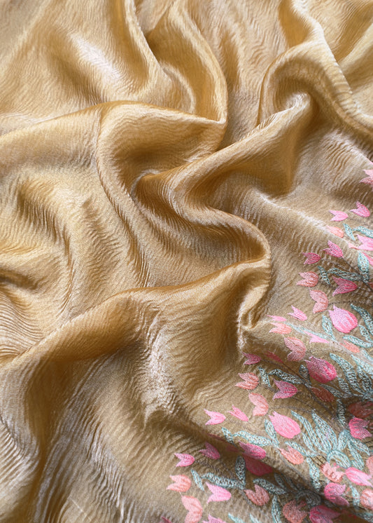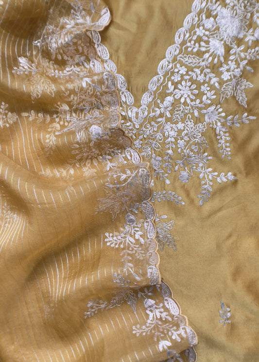 Golden Yellow Embroidered Crush Tissue Silk Suit