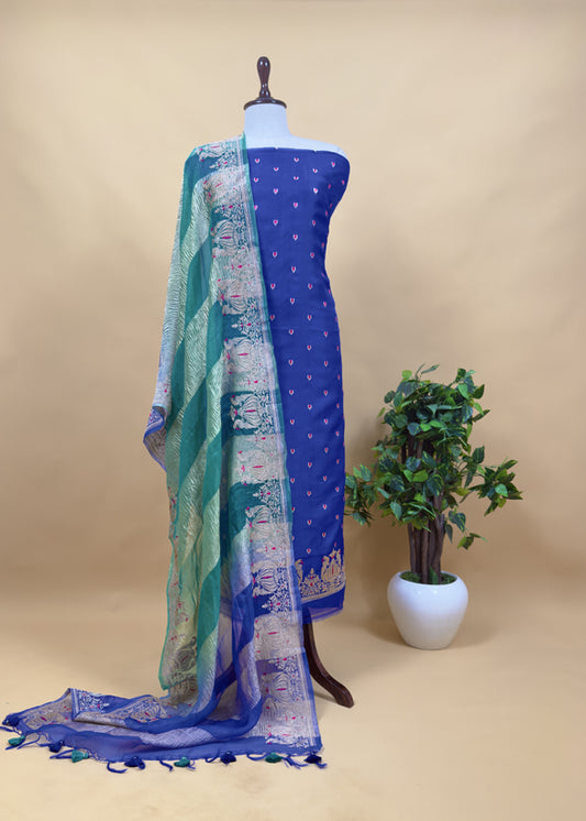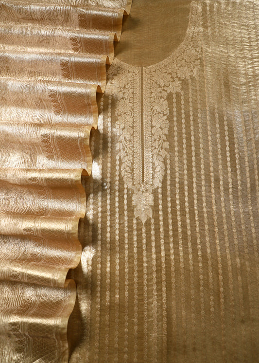 Golden Brown Tissue Silk Unstitched Suit With Crush Tissue Dupatta