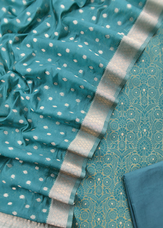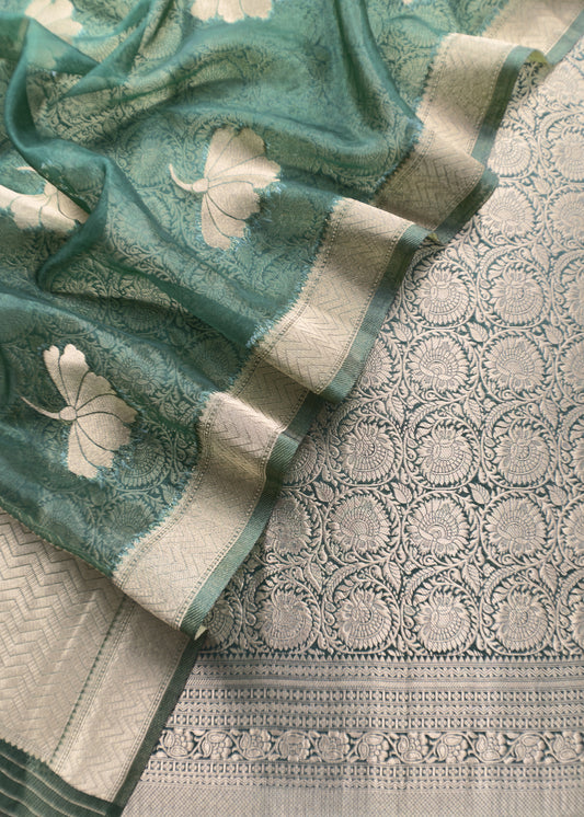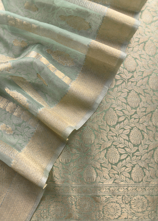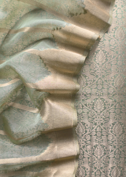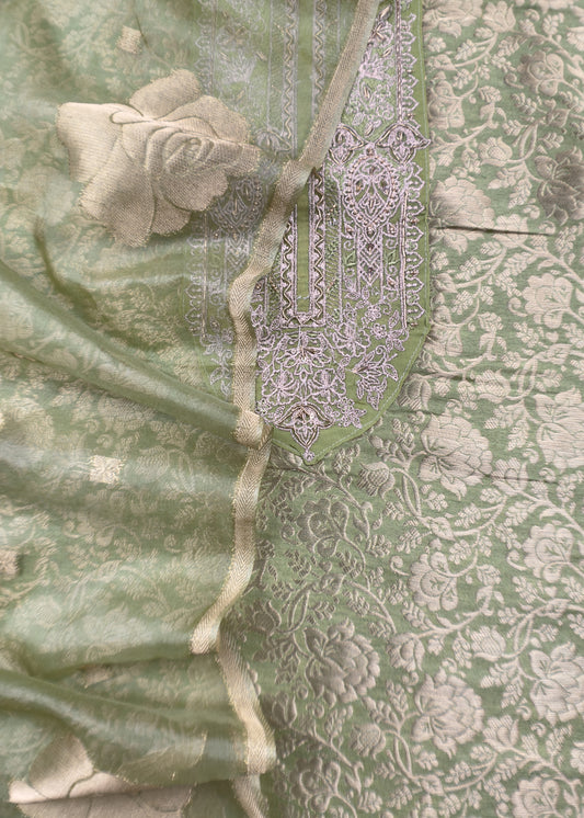 Green Banarasi Silk Brocade Suit With Organza Dupatta
