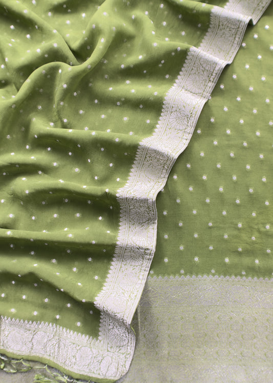 Green Banarasi Georgette Suit With Jacquard Weaving