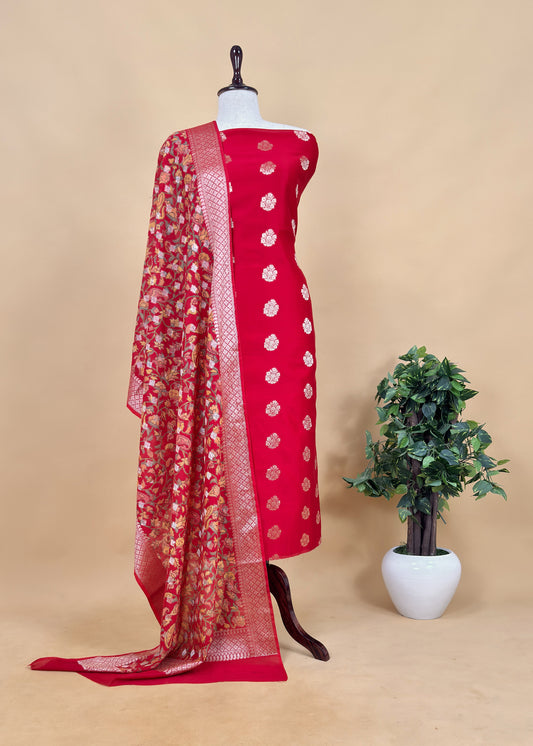 Green Chanderi Unstitched Suit With Jamdani Weaving