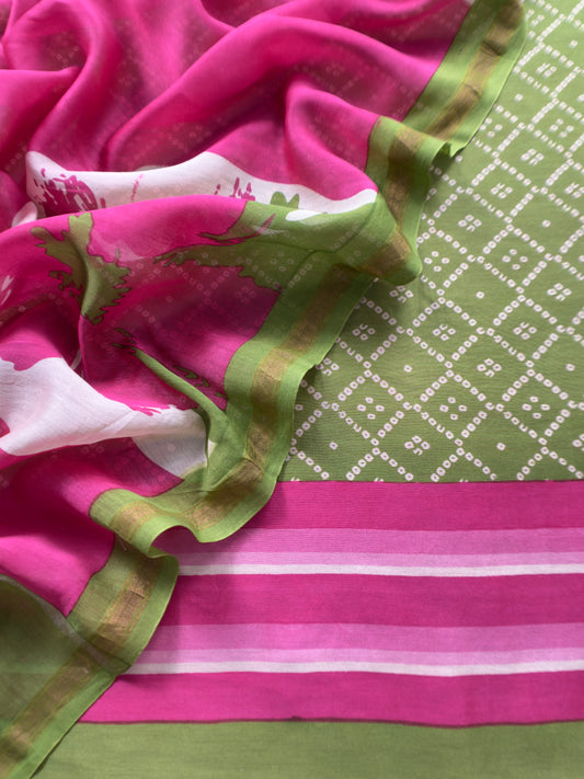 Green Bandhani Maheshwari Silk Suit With Dupatta