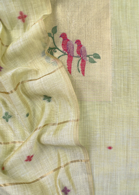 Green Jamdani Woven Unstitched Suit With Paithani Work