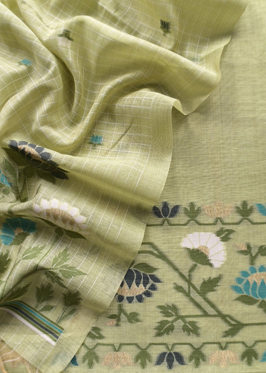 Green Jamdani Weaving Unstitched Suit In Maheshwari