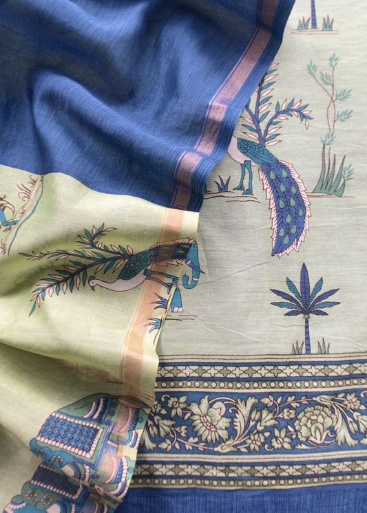 Grey Blue Khadi pashmina with kalamkari dupatta