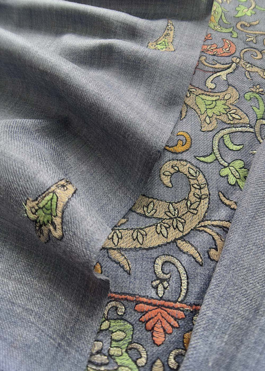 Grey Handloom Pashmina Suit With Kani Weaving