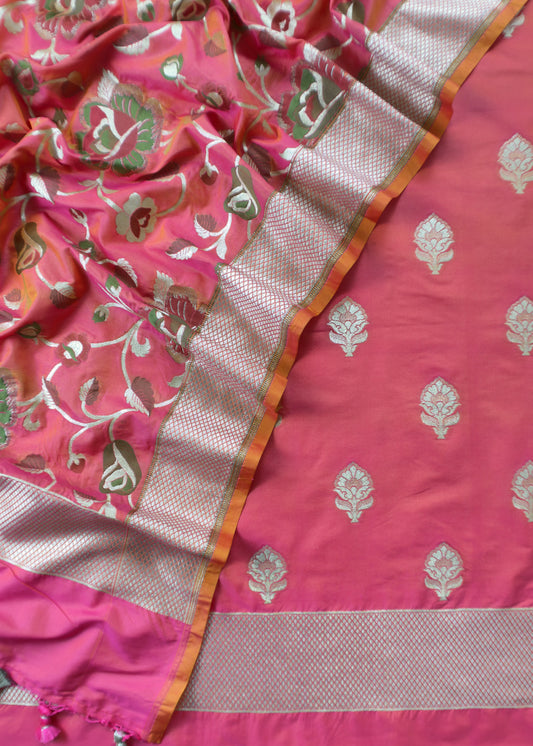 Handloom Phool-Patti Weaving Suit In Katan Silk