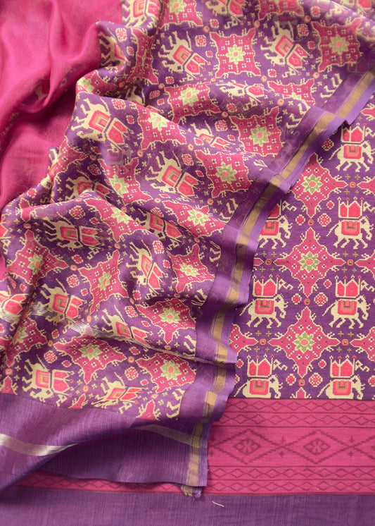 Handloom Patola Unstitched Suit In Maheshwari Silk