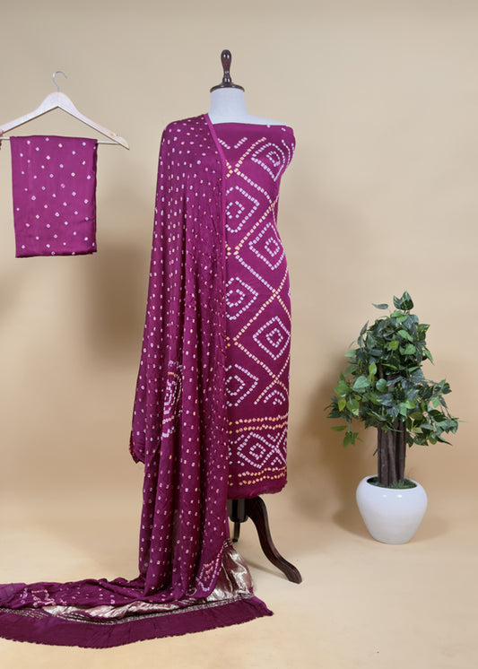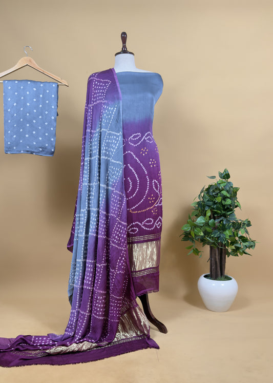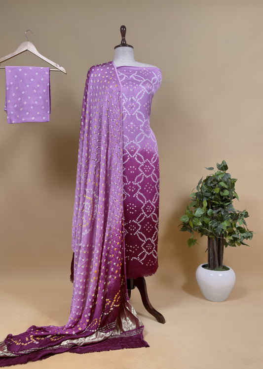 Heer Grape Purple Pure Gajji Silk Gharchola Bandhani Suit With Gold Lakdi patta weaving