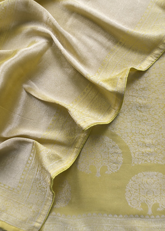 Lemon Yellow Tissue Brocade Silk Unstitched Suit With Zari Weaving