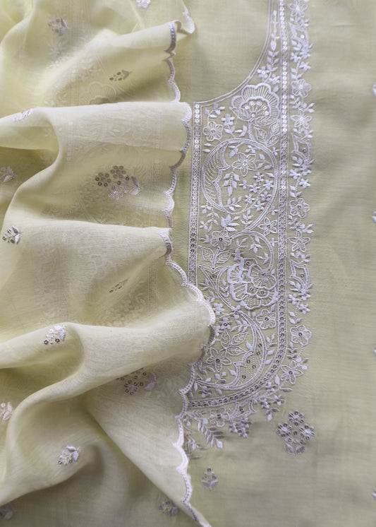 Lemon Yellow Pure Organza Suit with Tangail Weaving