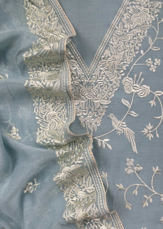 Light Blue Pure Mulmul Suit with Appliqué Work and Embroidery
