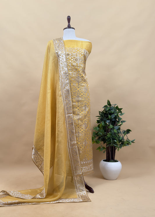 Lime Yellow Pure Kota Suit Fabric with Cross Stitch EmbroideryRegular price Rs. 1,795.00Regular priceUnit price perRs. 1,795.00Sale price Rs. 1,795.00