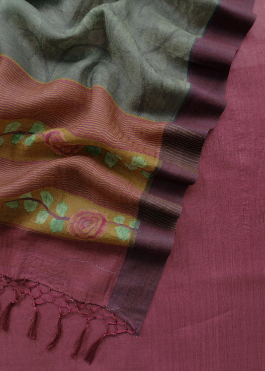 Maroon Pure Maheshwari Unstitched Suits With Kalamkari Dupatta