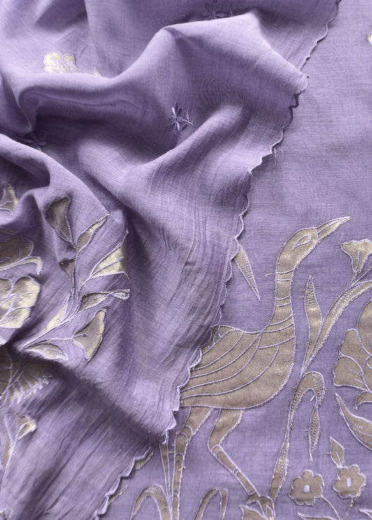 Medium Purple Presenting Our Pure Mul Cotton Unstitched Dupatta Suit With Tissue Appliqué Work.