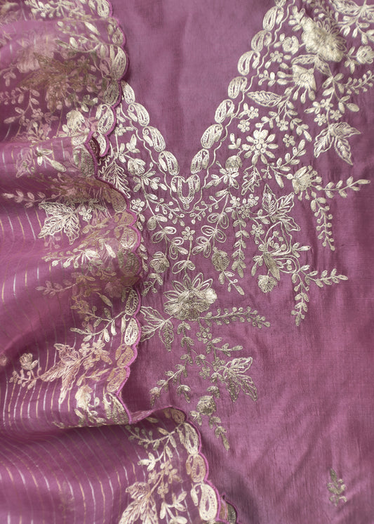 Mulberry Pink Tussar Silk Unstitched Suit With Pitta Work