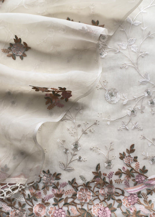 Off White Pure Organza Unstitched Suit With Resham Thread Embroidery
