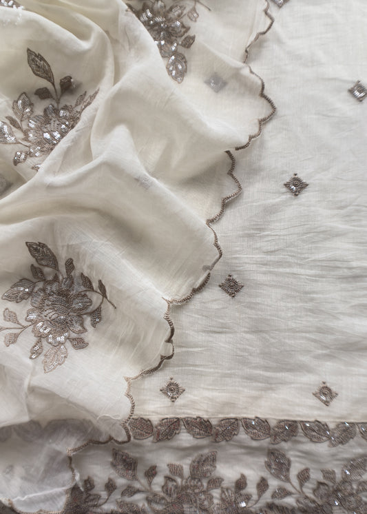 Off White Mul Suit Fabric With Bronze Sequin Embroidery