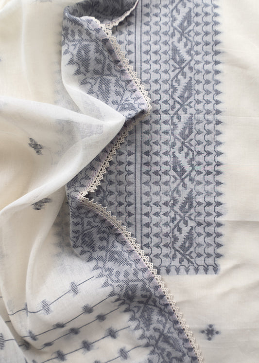 Off White With Black Cotton Linen Suit With Jamdani Weaving
