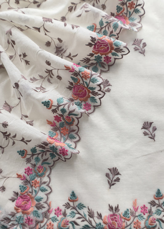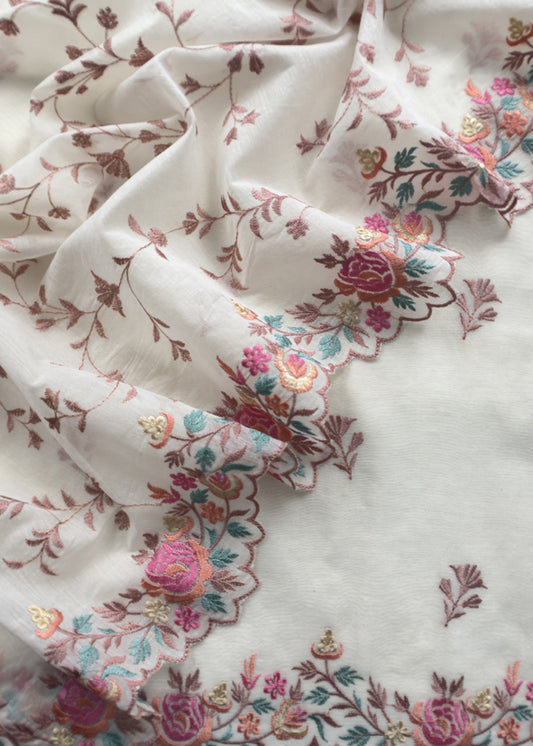 Off-White With Brown Pure Mul Banarasi Cotton Suit With Resham Embroidery