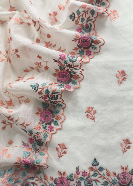 Off-White With Chikoo Pure Mul Banarasi Cotton Suit With Resham Embroidery