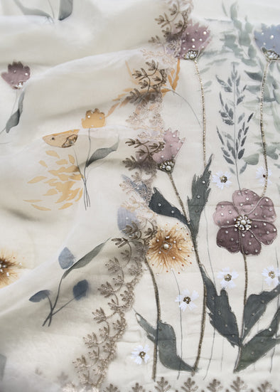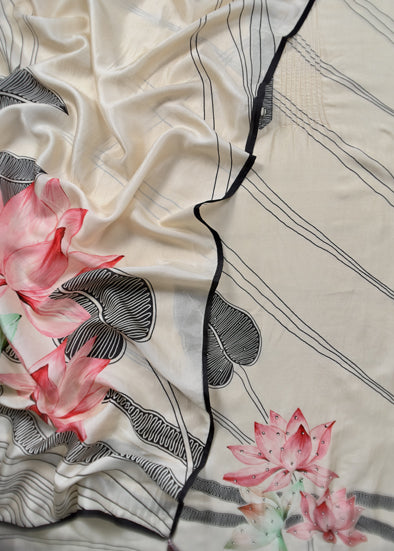 Off-White Linen Digital Print Unstitched Salwar Suit Set