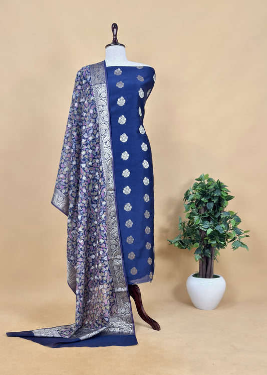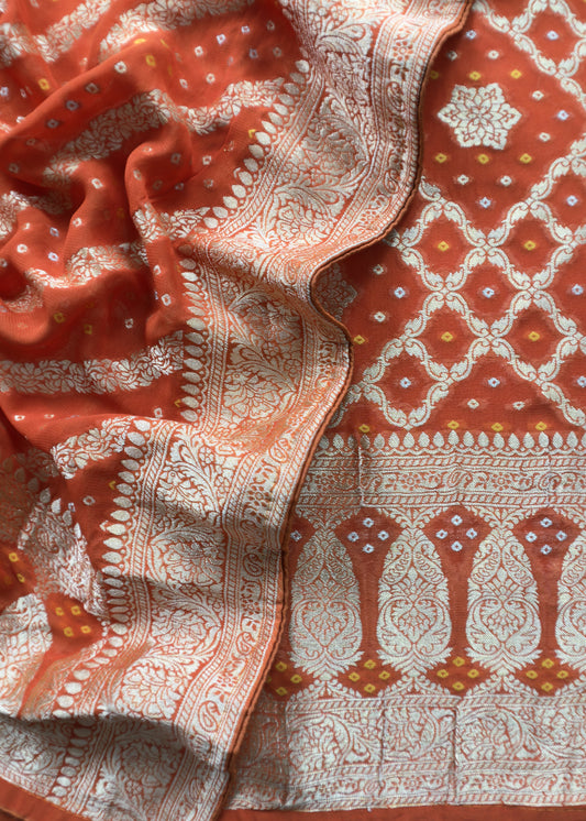 Orange Banarasi Khaddi Unstitched Dupatta Suit In Georgette