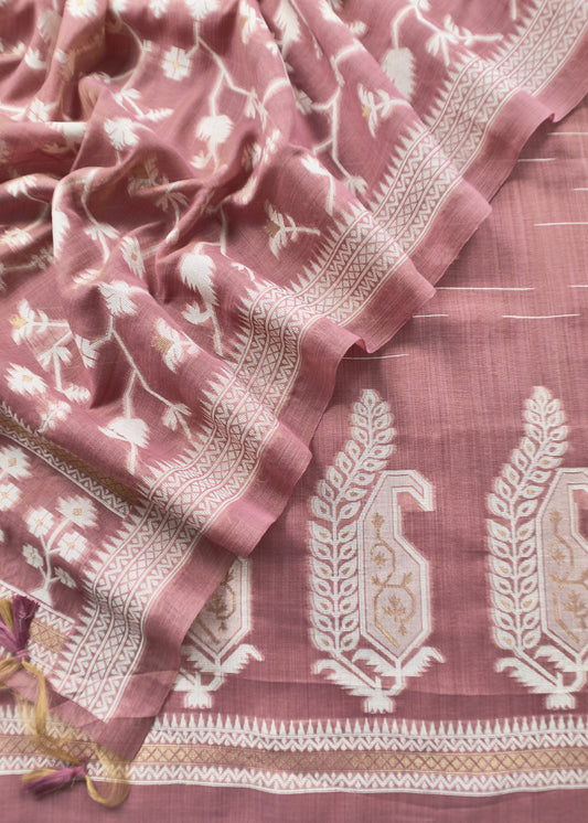 Onion Pink Chanderi Unstitched Suit With Jamdani Weaving