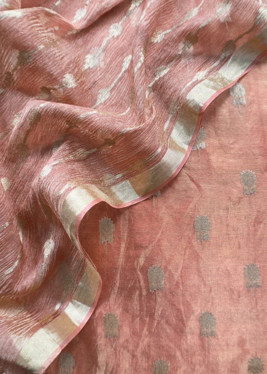 Orange Pure Tissue Silk Suit With Gold Zari Weaving