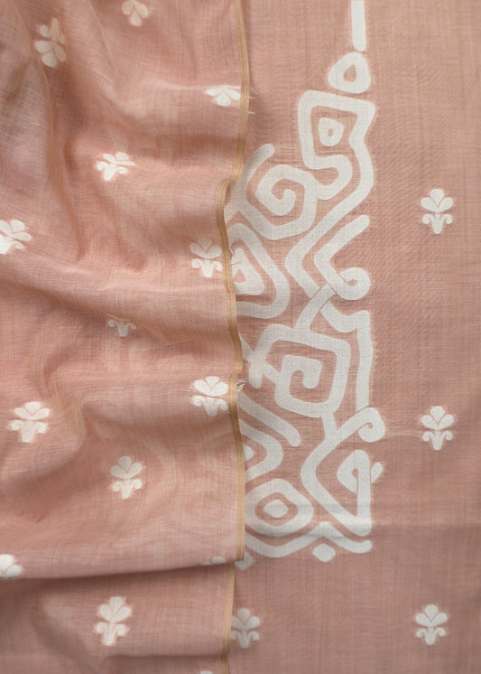 Pastel Peach Jamdani Weaved Suit Fabric In Linen Chanderi