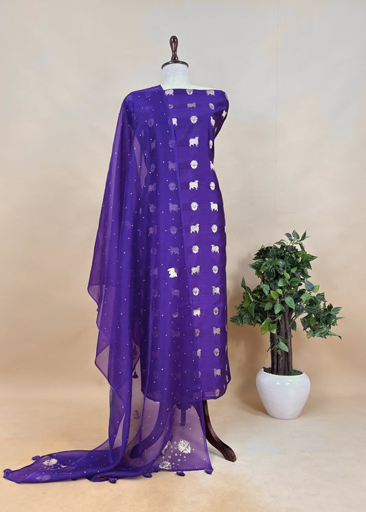 Pastel Green Pure Unstitched Chiniya Silk Suit In Pichwai Zari Weaving