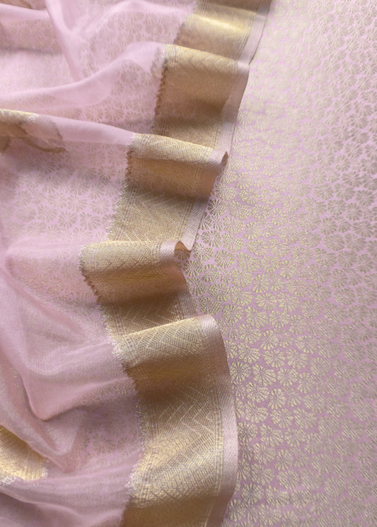 Pastel Pink Brocade Kurta With Organza Dupatta