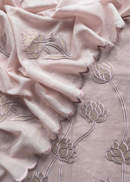 Pastel Pink Mul Cotton Suit With Lotus Appliqué Work