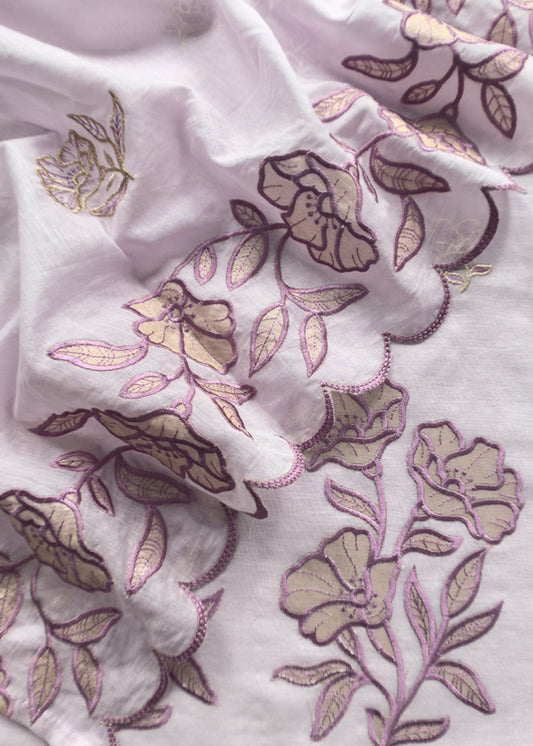 Pastel Purple Unstitched Suit with Applique Work In Linen Tissue
