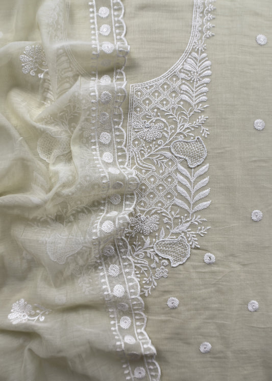 Pastel Yellow Chikankari Embroidered Suit In Mul Cotton