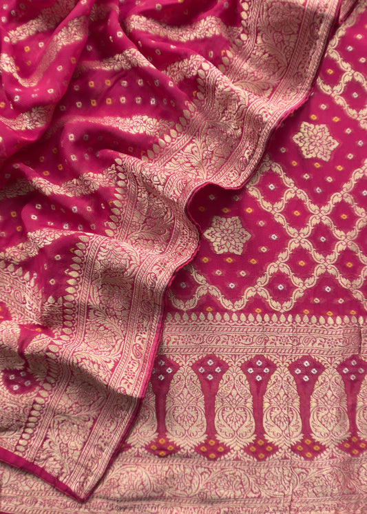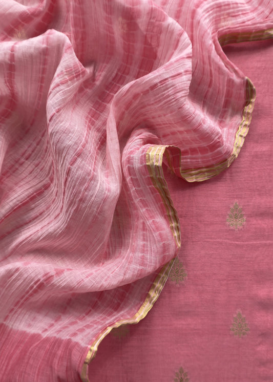 Pink Banarasi Chanderi Handloom Suit Set With Shibori Dupatta
