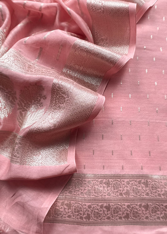 Pink Banarasi Khaddi Unstitched Dupatta Suit In Georgette