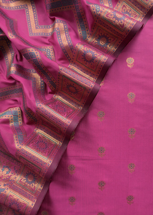 Pink And Deep Pink Contrast Banarasi Handloom Silk Suit fabric